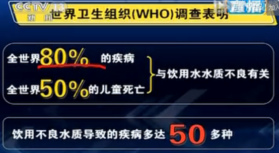 全世界80%的疾病來自水污染,霍亂全球發生過7次大流行,每一次流行都與水體污染有關。以農村比較常見,不干凈的水可能含有病菌、病毒,輕則可導致腹瀉、傷寒、痢疾等疾病,嚴重的會引發肝炎。