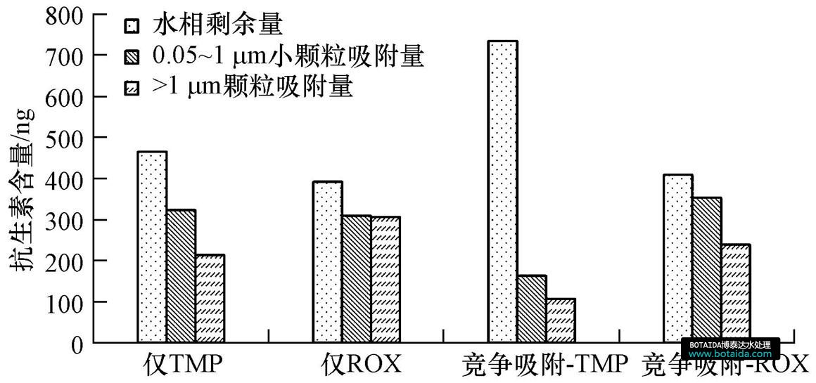 整體上,甲氧芐啶與青霉素G二者互相抑制,青霉素G對甲氧芐啶的抑制作用更明顯,特別是對于大顆粒吸附能力來說.但是,甲氧芐啶的存在卻增強了小顆粒對青霉素G的吸附能力.