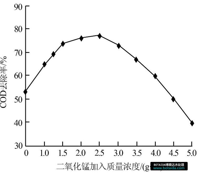 圖2 MnO2加入量對廢水COD去除率的影響