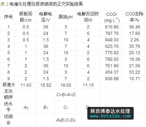 (3)調節極板間距至1.5~2.0 cm對提高垃圾滲濾液的COD去除率有利。過小的極板間距會產生短路現象,過大則會降低去除效果。