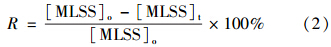 式中,[MLSS]o和[MLSS]t表示未經臭氧處理及經臭氧處理t時后污泥的MLSS(mg · L-1).