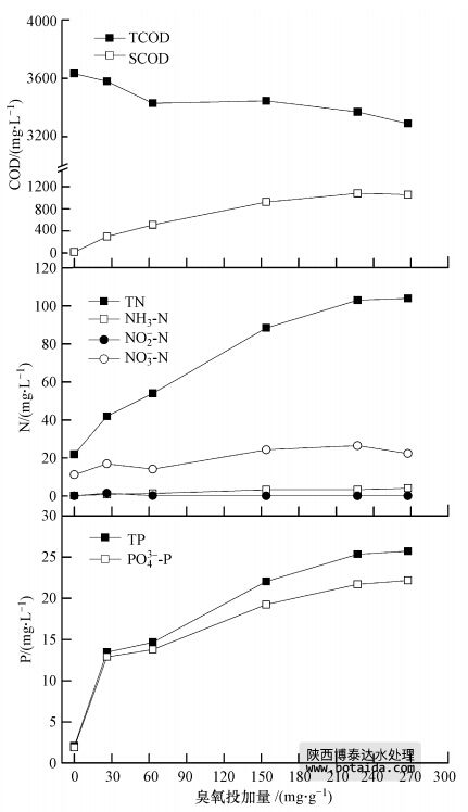 3.1.2 臭氧投加量對污泥中COD、氮、磷溶出的影響