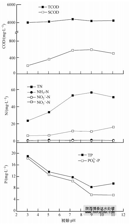 3.1.4 初始pH對臭氧處理后污泥中COD、氮和磷溶出的影響