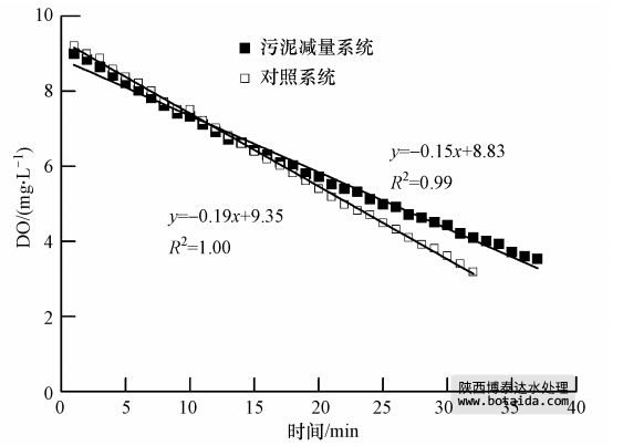 圖 6 減量系統與對照系統中活性污泥耗氧速率曲線