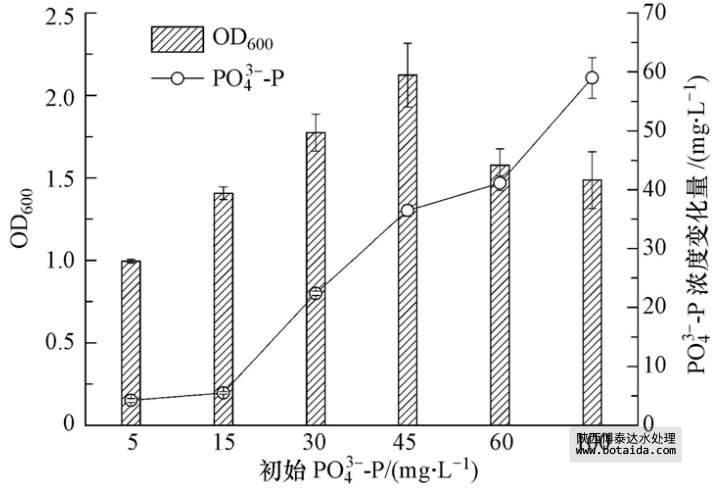 聚磷菌對磷的去除包括兩條途徑:生長利用和異染顆粒貯磷.根據聚磷菌分離篩選原理,過高濃度的PO3-4-P會抑制聚磷菌的生長與繁殖. 因此,考察不同起始濃度的PO3-4-P對聚磷菌生長的影響及相應條件下聚磷菌對PO3-4-P的去除效果,對分析聚磷菌生長與聚磷過程的關系及指導聚磷菌在富營養化水體中的工程應用有實際意義.