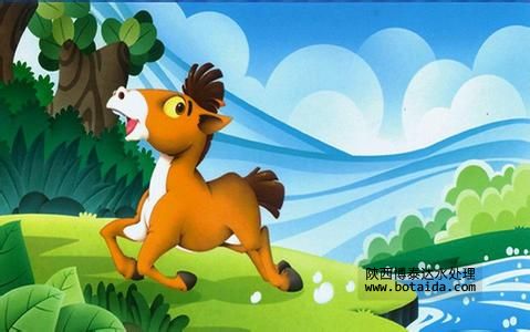 他過的很快樂,時光飛快地過去了。 有一天,媽媽把小馬叫到身邊說:“小馬,你已經長大了,可以幫媽媽做事了。今天你 把這袋糧食送到河對岸的村子里去吧。” 小馬非常高興地答應了。他馱著糧食飛快地來到了小河邊。