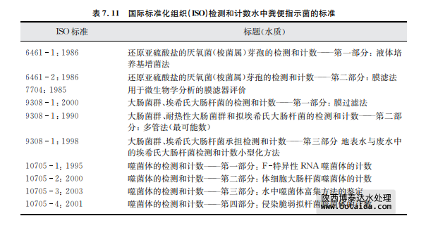 國際標準方法在被采納之前應根據當地的具體情況進行評估。可以使用已建立的標準 方法,如國際標準化組織(ISO)(見表7.11)的方法或效果及可靠性與其相當的方法均可采 用。對于常規檢測可采用那些已建立的方法。無論選用何種方法檢測埃希氏大腸桿菌或耐 熱性大腸菌群,都必須考慮因環境或消毒劑受到損傷的微生物菌株的“復蘇”或“恢復”問題。