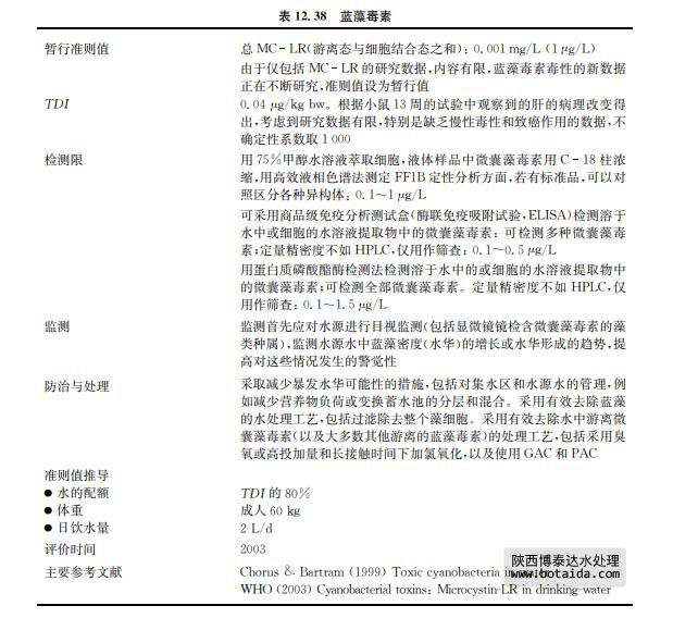 微囊藻毒素至今已鑒定出80多種類別,其中只有少數幾種經常存在而且濃度較高。 MC LR是其中最常見、在同系物中毒性最強的一種,也是唯一一種具有足夠的毒理學數 據支持而得出一個暫行準則值的藻毒素。在經常出現的藍細菌屬中,微囊藻屬 (犕犻犮狉狅犮狔狊狋犻狊),浮絲藻屬(犘犾犪狀犽狋狅狋犺狉犻狓)和魚腥藻屬(犃狀犪犫犪犲狀犪)通常含有這類毒素(參見 11.5節)。