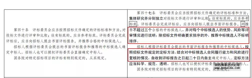 在意見稿中,對原招投標法第四十條的修改格外引人注目。修改之后,評標委員會推薦的中標候選人不標明排序;招標人按照招標文件規定的定標方法,結合中標候選人合同履行能力和風險進行復核的情況,自收到為評標報告之日起二十日內自主確定中標人。