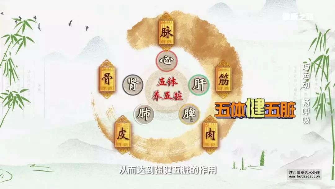 五體平衡操分為調息益肺、強肌健脾、通脈養心、伸筋舒肝四節,可以調整呼吸節律、順脾胃之氣、促進氣血運行和強骨補腎。