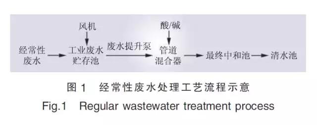 非經常性廢水處理系統工藝流程如圖2所示, 調整pH值后的廢水先后經過反應槽、絮凝槽完成凝聚、絮凝反應, 然后進入斜板沉淀池完成絮凝體與水的分離。沉淀池上部的清水自流進入最終中和池進行pH值調整, 最終出水流入清水池, 與經常性廢水匯總。