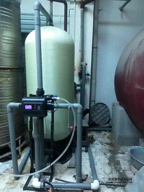該裝置在多路通伺服閥中巧妙的設計了靠進水壓力為動力的自吸式噴射器,按工序要求定時進行吸鹽和補水。整個鹽水的制備僅在交換罐近旁設一個配有小巧控制閥的輕便鹽箱即可。省去了鹽池。鹽泵及必要的輸配管道和動力配電等裝置,也省去專用水處理間的額外投資。