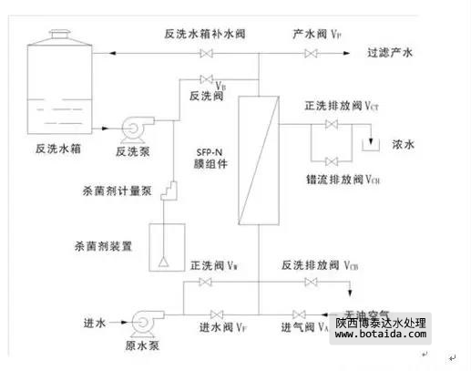 一般情況下,反洗和氣擦洗系統對于SFP-N超濾是必需的;通常,還配備一個殺菌劑加藥系統以控制微生物等繁殖對超濾膜的影響;而分散化學清洗系統則在水質較差時配備。