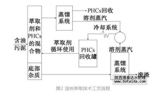 溶劑萃取法選擇一種有機溶劑作為萃取劑,利用“相似相溶”原理,將PHCs溶解并使其與含油污泥中其他組分分離,然后將混合物蒸餾以分離出PHCs和萃取劑,比離心分離法更適用于高含油率油泥、老化油泥等一些處理難度大、回收利用價值高的處理單元。