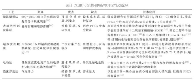 其他技術主要包括微波輻射法、表面活性劑洗滌法、超聲波處理法、電動法、泡沫浮選法等,尚處于實驗室研究階段,具體對比情況見表1。