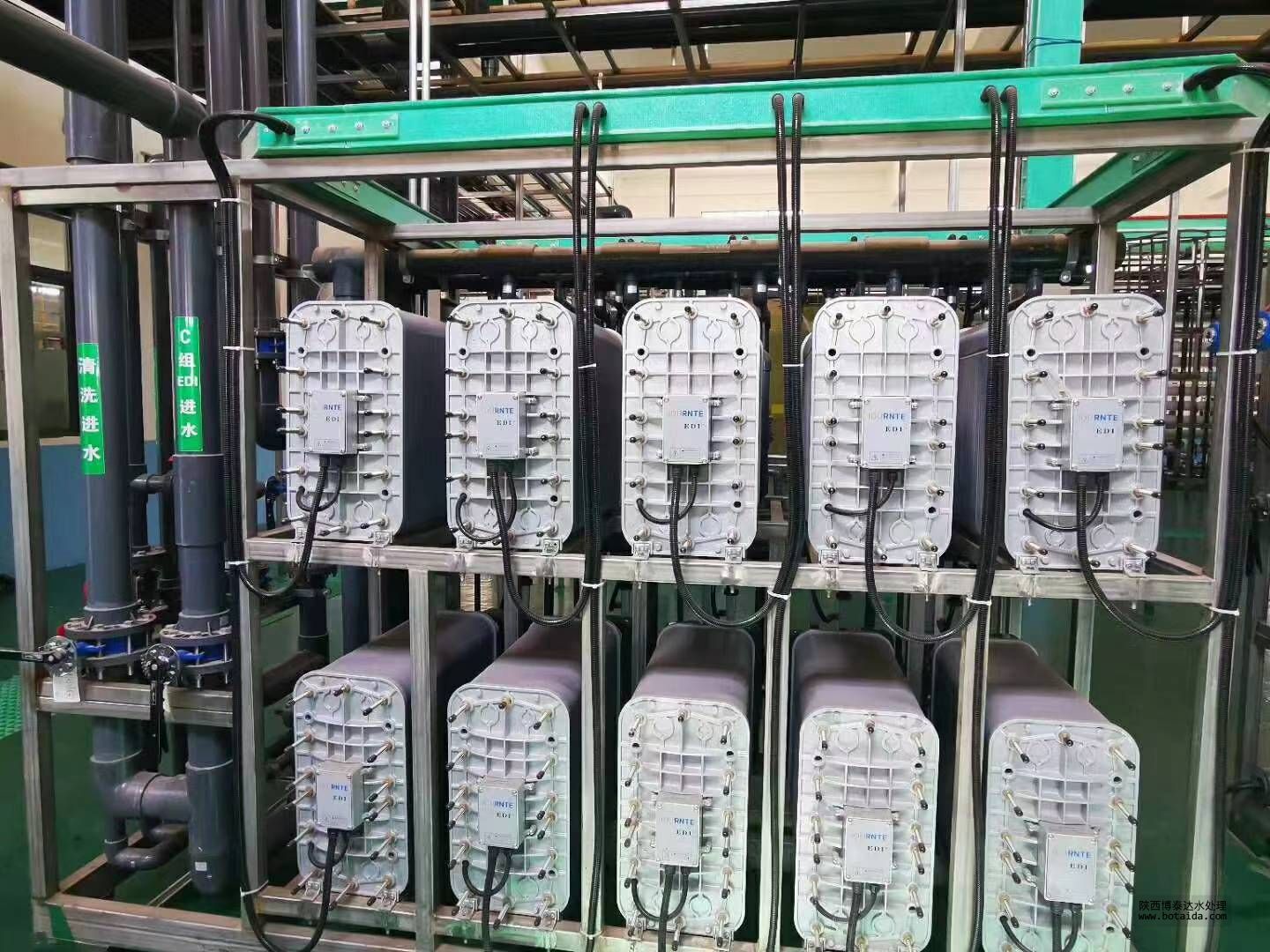 2、原水箱→原水增壓泵→石英砂過濾器→活性碳過濾器→軟水器→保安過濾器→反滲透→中間水箱→水泵→EDI裝置→純化水箱→純水泵→紫外線殺菌器→拋光混床→0.2或0.5μm精密過濾器→用水對象(≥18MΩ.CM)(最新工藝)